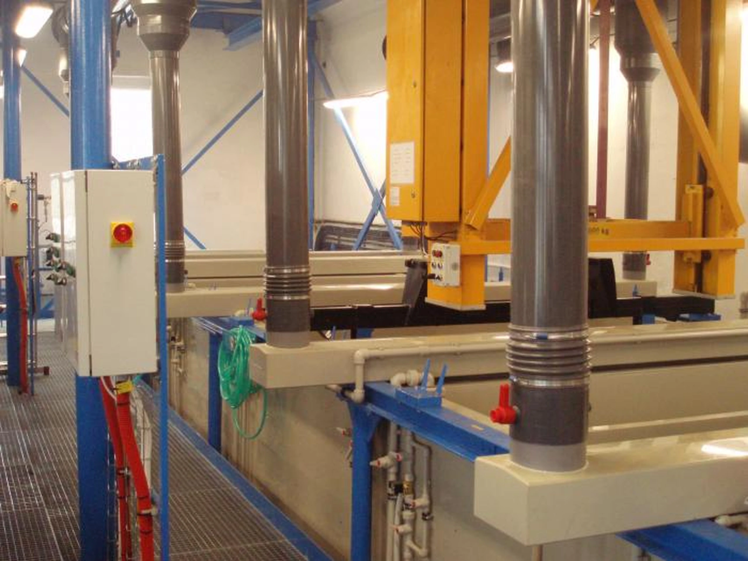 Pro povrchové úpravy kovů a plastů dodáváme kompletní linky, včetnì výrobny provozní vody a čistírny odpadních vod, na základě zadaných požadavků procesů, kapacity a podmínek pro vodní hospodářství linek.