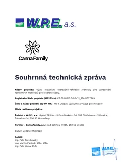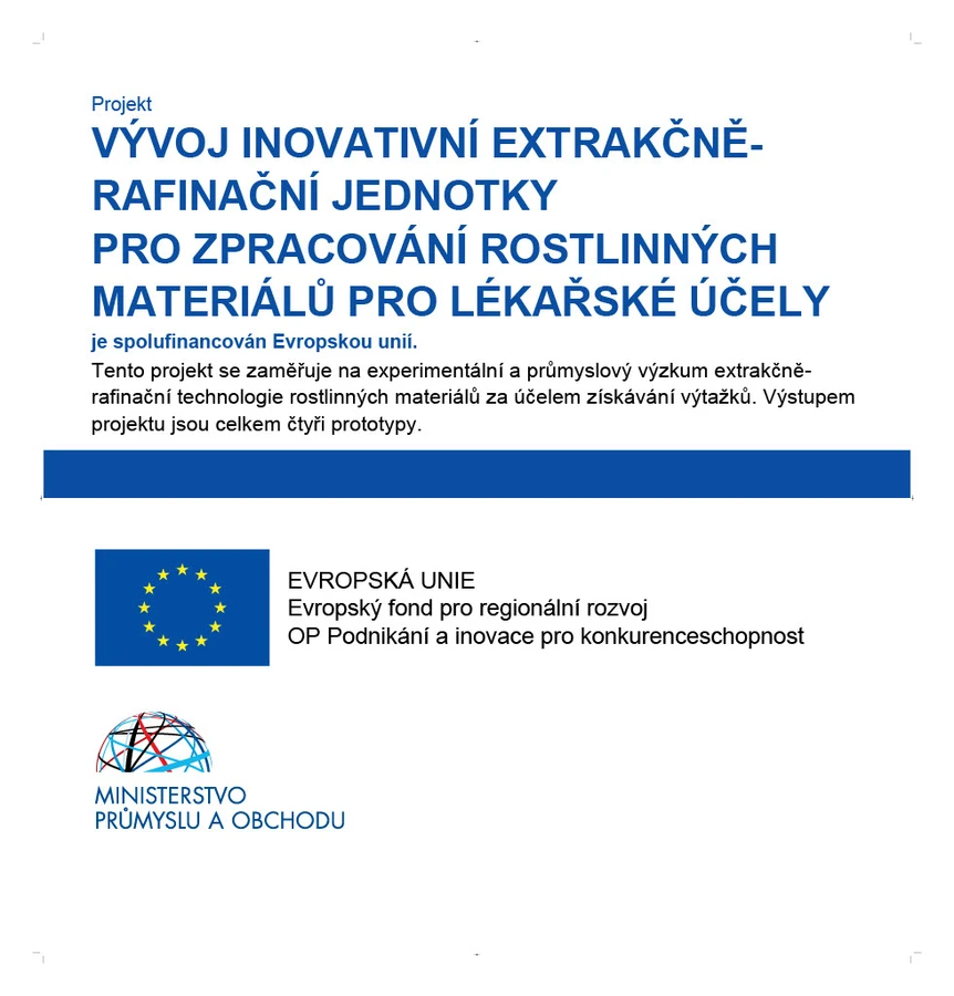 Vývoj inovativní extrakčně-rafinační jednotky pro zpracování rostlinných materiálů pro lékařské účely